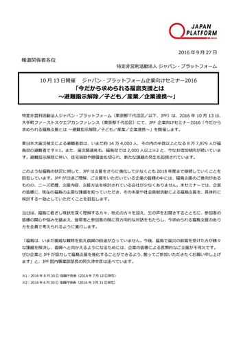 福島支援については昨年から複数回、テーマやターゲットを絞って報告会を開催してきました。今回は企業様向けの企画です。 避難指示解除が進む今、被災者の方々は【どこでどう生活するのか?】の決断を迫られています。「心から納得できる選択をできない」、…